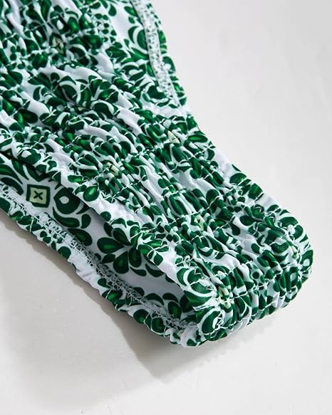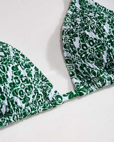 Women's Triangle Bikini Set String Swimsuit Print Tie Smocked Ruched Two Piece Bathing Suit