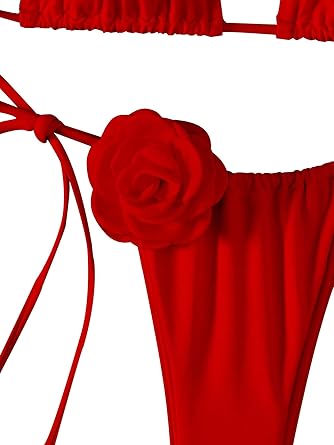 - Designs: 2 piece set, 3D floral appliquestie, tie back, tie side, thong, wireless, cute, trendy, vacation style.
